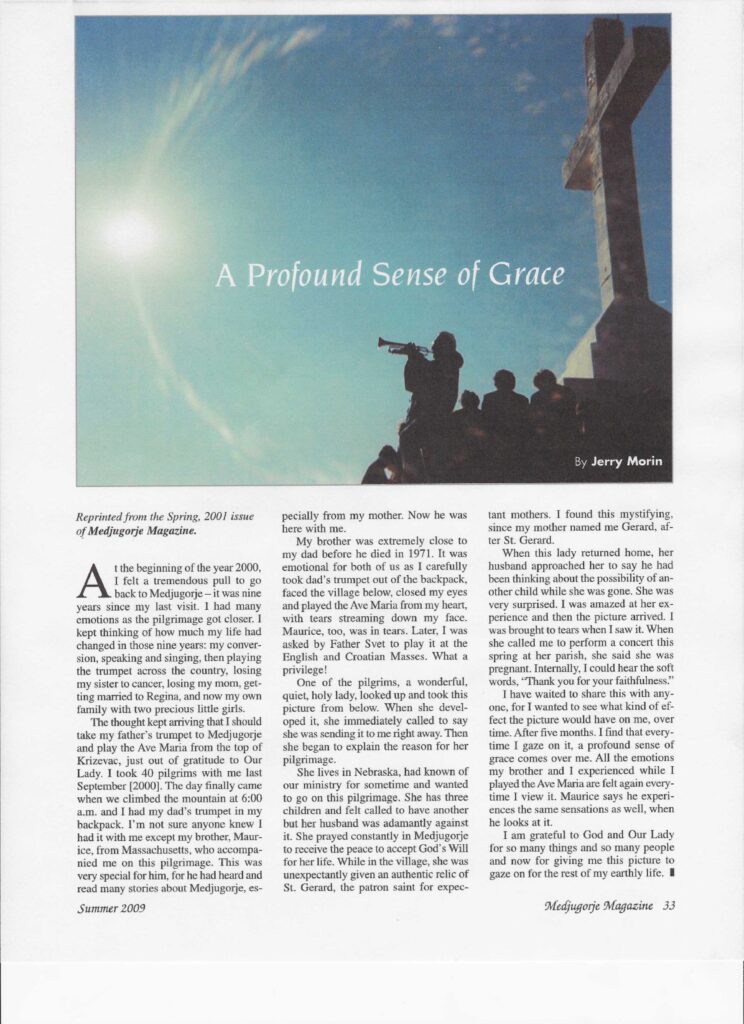 This website and Jerry’s works are evidence of “fruits” of conversion. He believes his experiences in Medjugorje transcend any earthly experience as he counts it all as miracles of grace. He was honored to have his works sent in 2009 to the Vatican Commission on Medjugorje as a testimony and personal witness of the power of this holy place.